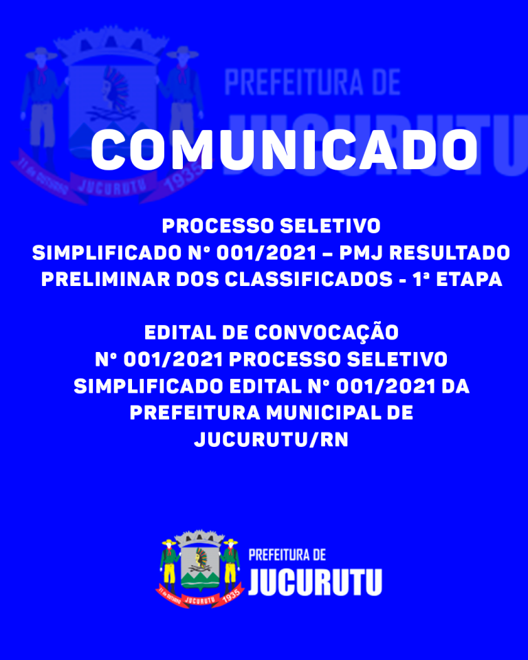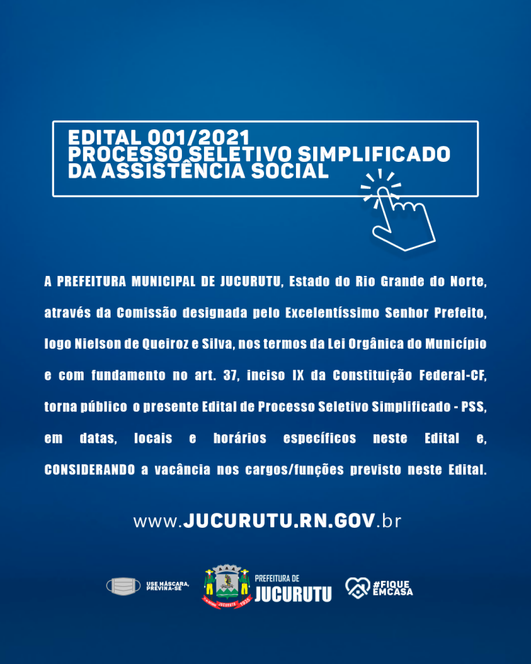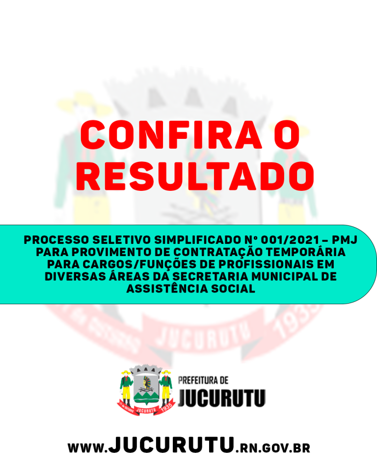 Comunicado do PROCESSO SELETIVO SIMPLIFICADO Nº 001/2021 DA SECRETARIA MUNICIPAL DE ASSISTÊNCIA SOCIAL