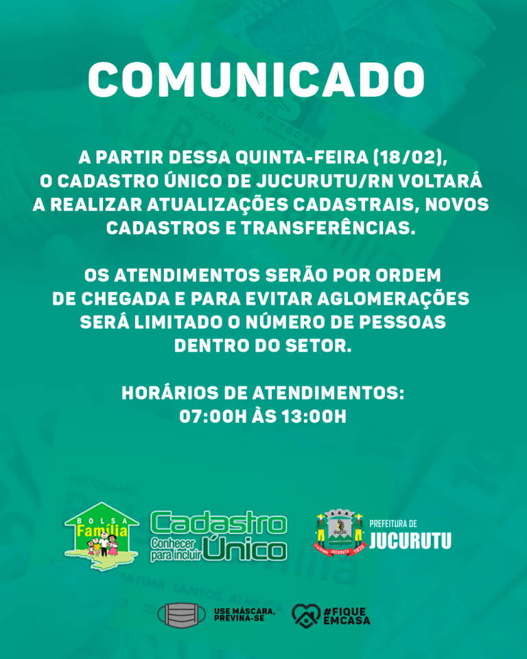 O Cadastro Único inicia hoje (18) o processo de atualização, primeiro cadastro e transferências do programa de Cadastro Único do Município