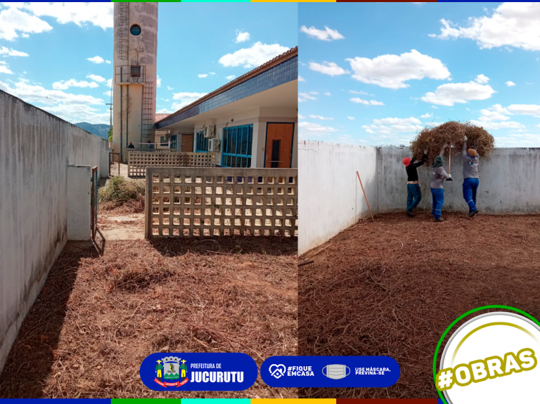 A capinação e limpeza têm continuidade não só nas vias urbanas. O serviço também abrange outros espaços verdes municipais, como os presentes nas edificações públicas.